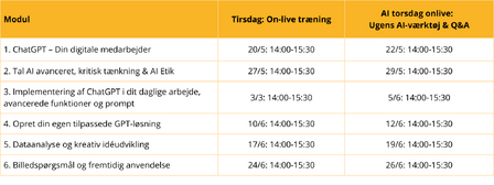 Uddannelsen kræver en betalt licens til ChatGPT. Du kan se mulighederne her